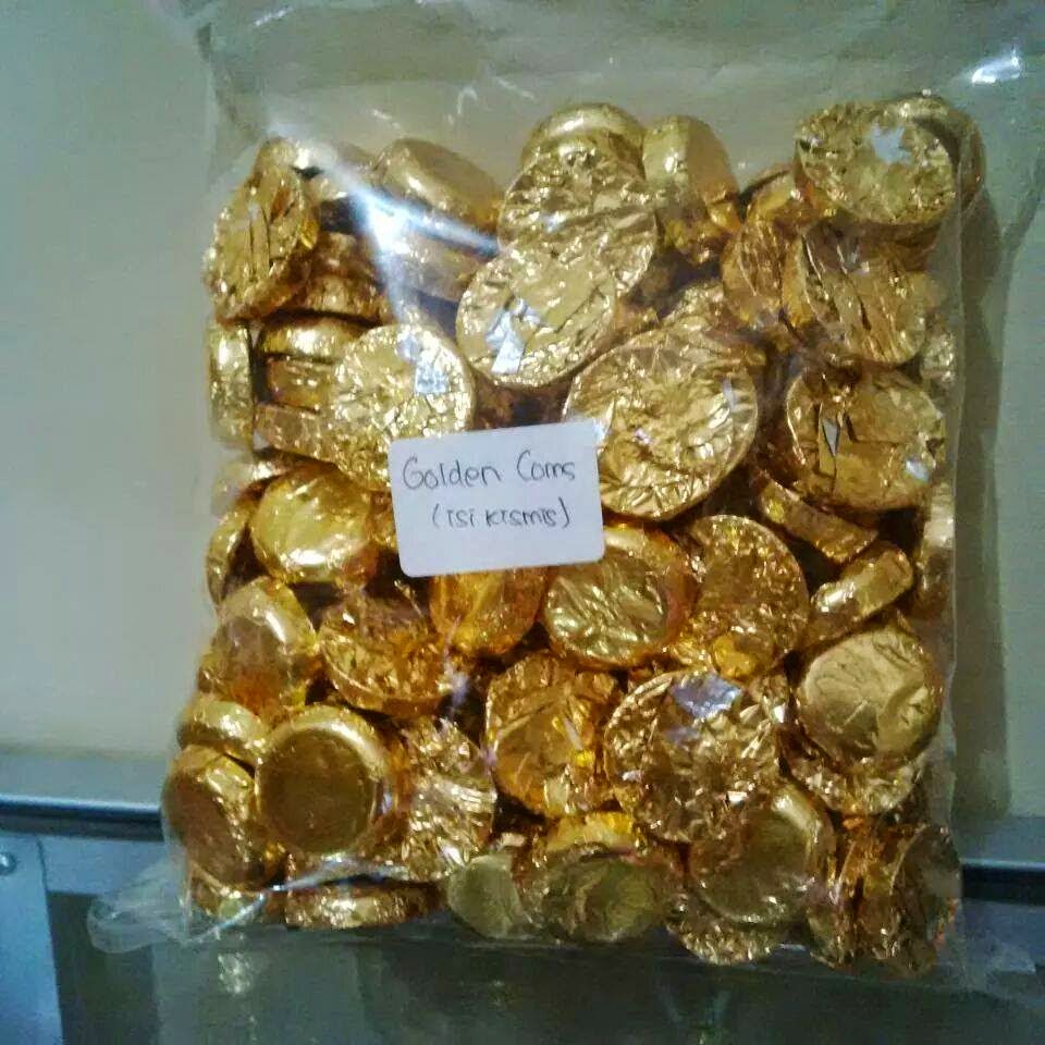 Golden coin (isi kismis)1kg@80rb,@43rb/500gr. Shaufa Coklat - Pusat Pembelian Coklat Online Indonesia adalah situs Grosir Coklat Berkualitas Tinggi yang menjual Coklat Kiloan, Coklat Import, Aneka Snack, Jelly dan Kacang Mede berkualitas Tinggi. Kami juga Melayani Retail, Reseller